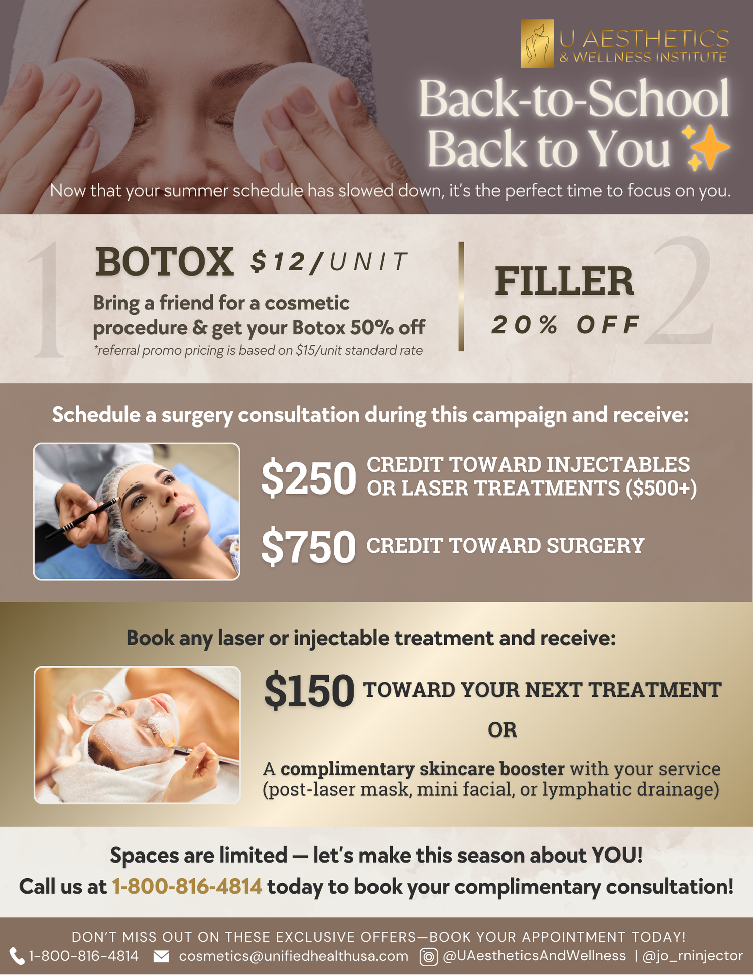 This August, enjoy exclusive savings at U Aesthetics! Choose from PRP Microneedling, PRP Hair Restoration, IPL, Daxxify, or Filler treatments. Don’t miss out!